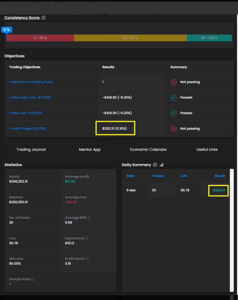 FTMOは利益に関しては、資本を15%増やした時点でテストに合格し資金を受けられますが、ただパフォーマンスを出せばいいのではなく、テストに合格するまでの過程もみられるのです、つまり1日の最大損失額なども決まっているのです。