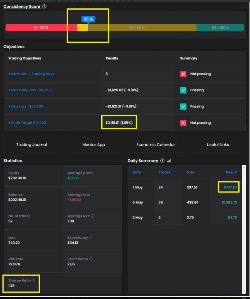 2024年5月9日 / 最終更新日時 : 2024年5月14日 financial-market-samurai FTMO Challenge April 7th, 2024(Tuesday)Grades and Impressions Proptrader April 7th, 2024(Tuesday) 本日の損益:$727.57 本日の増加損益 : 0.69% 年換算利回り : 88.56% 現時点での損益:0.36% 資本:$202,116.01 Consistency Score:35% Sharp Ratio:1.25 Follow me! FacebookXCopy